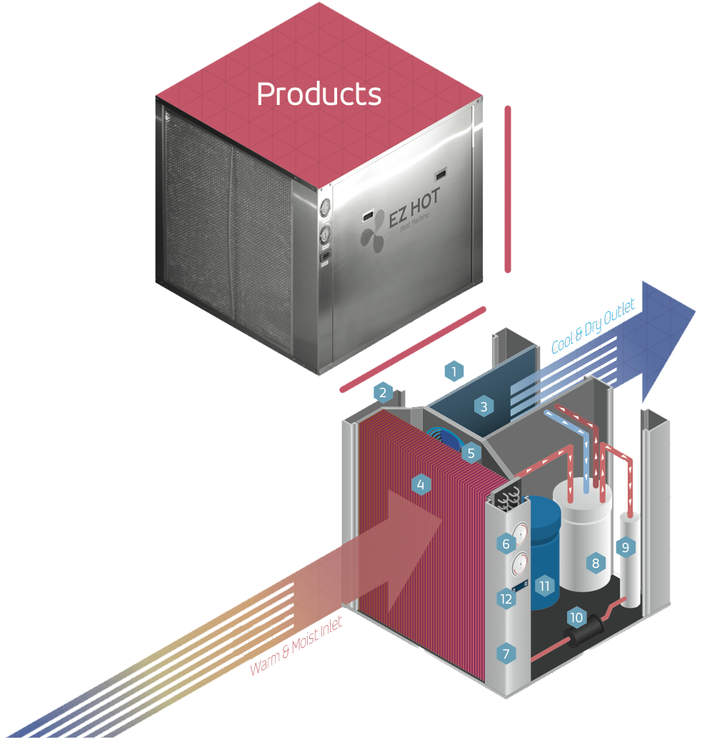 Corrosion resistant all copper, dynamic 4 rows evaporator coil giving a 50% higher efficiency and lower operating cost.